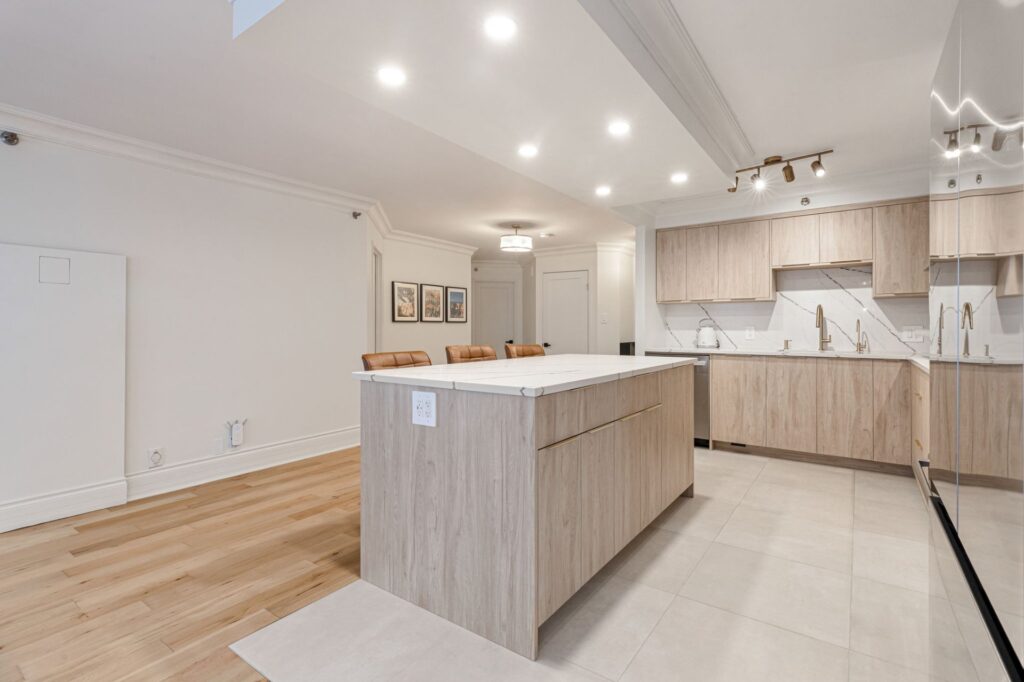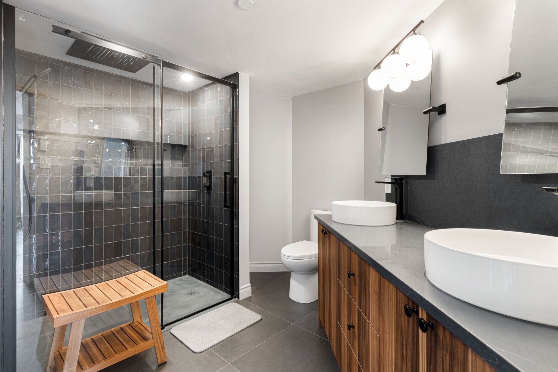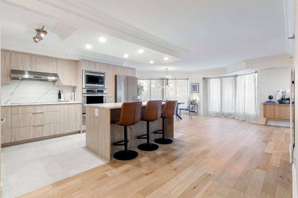 Baigné de lumière naturelle, le condo a été **entièrement rénové** avec une approche moderne, élégante et intemporelle.