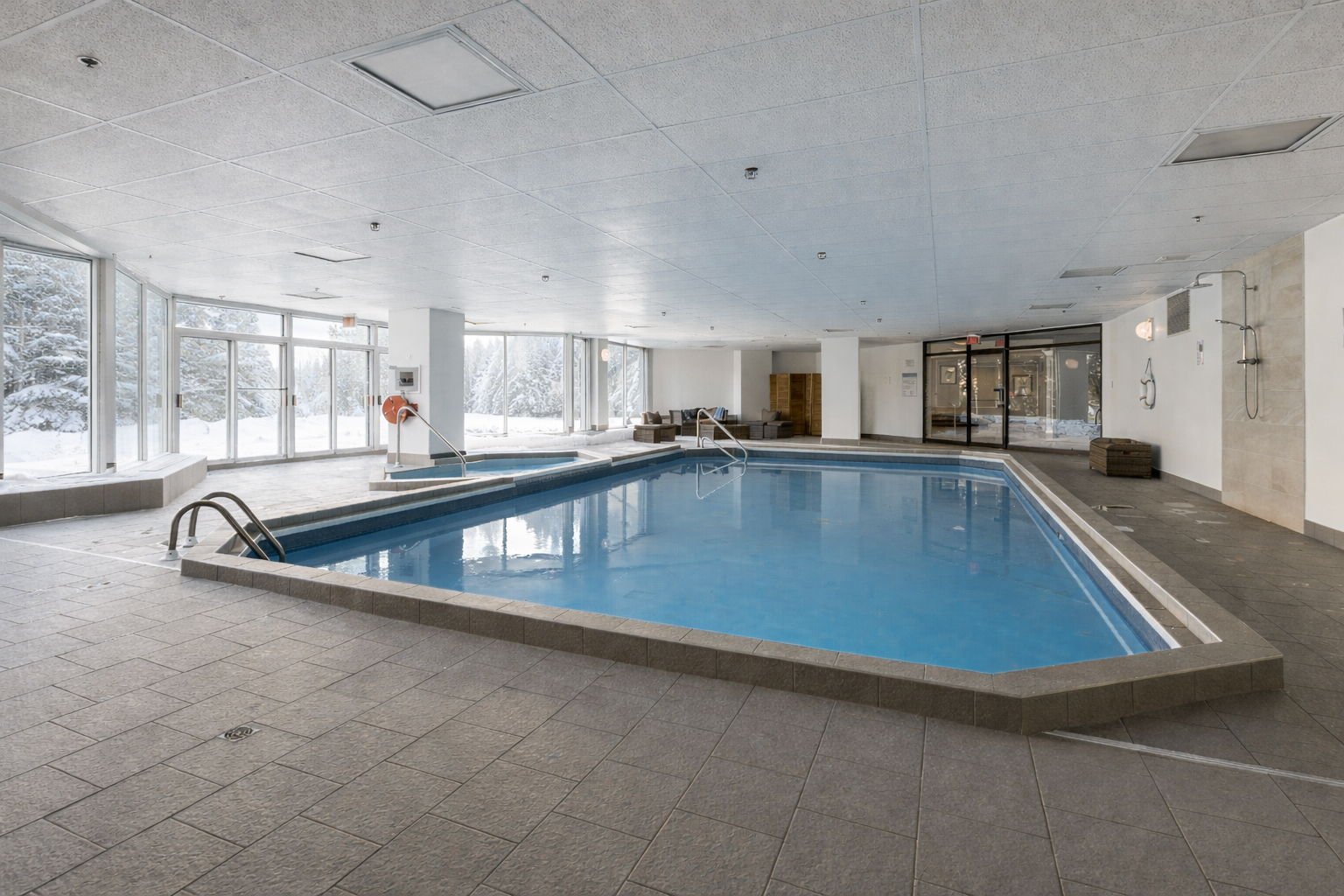 Le complexe propose une gamme complète de **commodités recherchées**, incluant une piscine intérieure, une salle d’entraînement, un sauna, des ascenseurs, des espaces communs soigneusement entretenus, un stationnement intérieur ainsi qu’un espace de rangement.