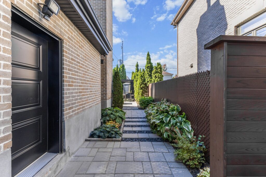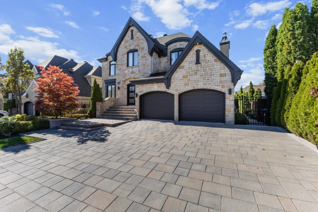 La cour est magnifiquement aménagée avec du pavé uni de l’avant à l’arrière, assurant un entretien minimal et un style remarquable.