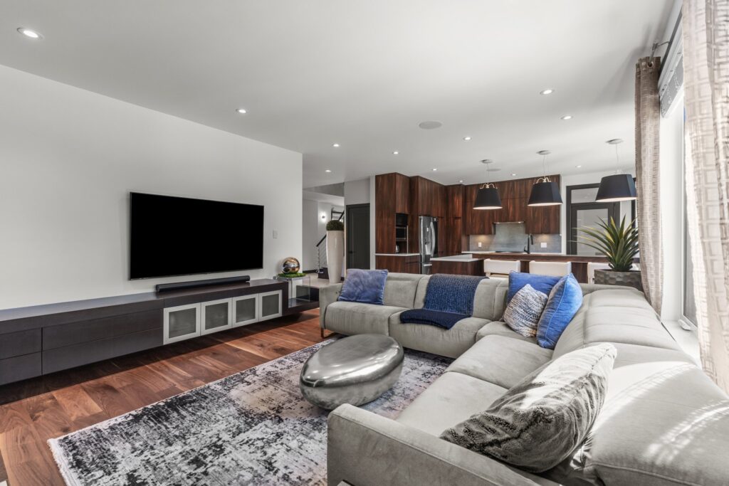 Le concept à aire ouverte est lumineux et moderne, idéal pour la vie familiale et pour recevoir.