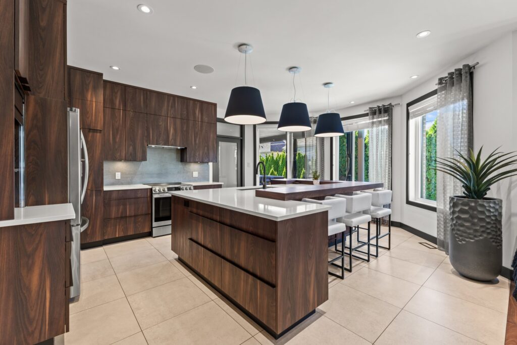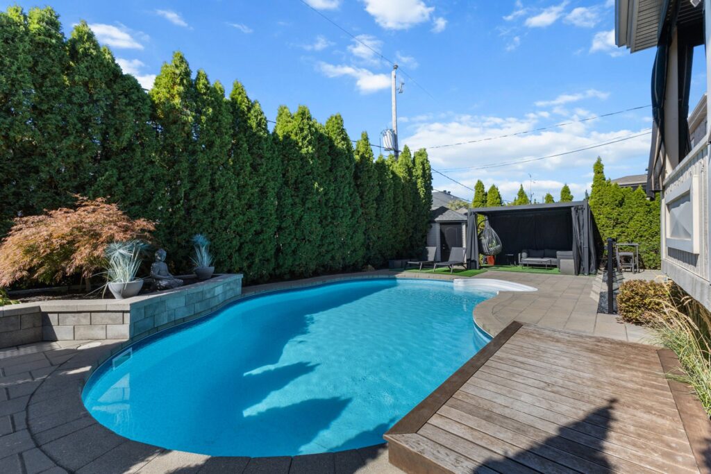 La cuisine gourmet est un véritable rêve de chef — armoires épurées, comptoirs en quartz, et une cuisine extérieure complète avec BBQ, rendant les repas à l’intérieur comme à l’extérieur simples et raffinés.