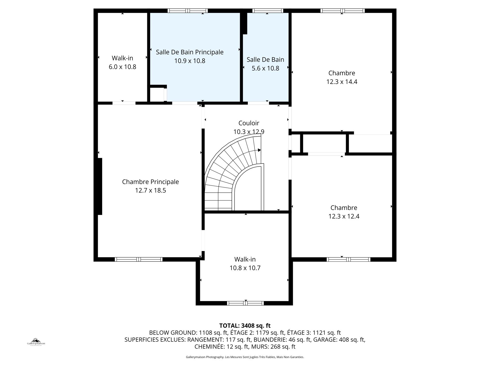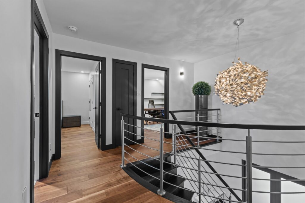 La propriété offre trois salles de bain complètes et une salle d’eau, toutes entièrement rénovées avec des finis modernes et de qualité.
