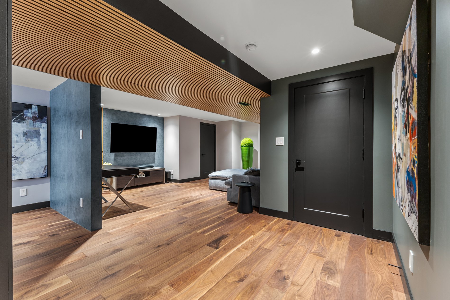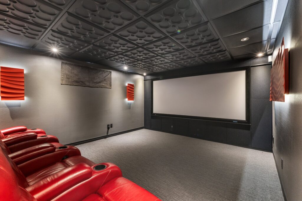 Une salle de cinéma entièrement équipée au sous-sol est prête à accueillir vos soirées films entre amis ou en famille — pour un vrai divertissement à domicile.
