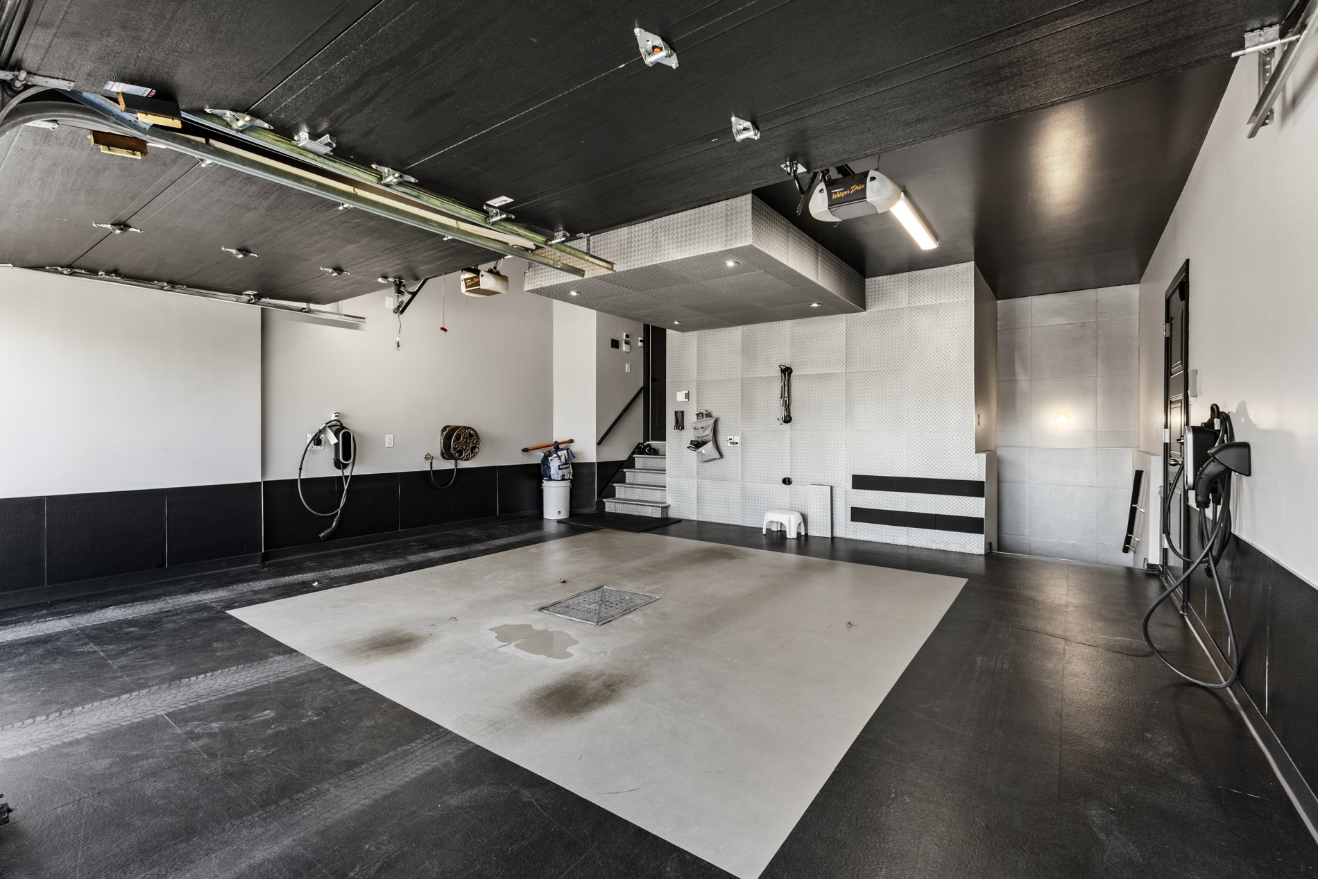 Le garage double est prêt pour accueillir des véhicules électriques, avec le câblage en place pour deux bornes de recharge, et l’entrée élargie ajoute un niveau de commodité supplémentaire.