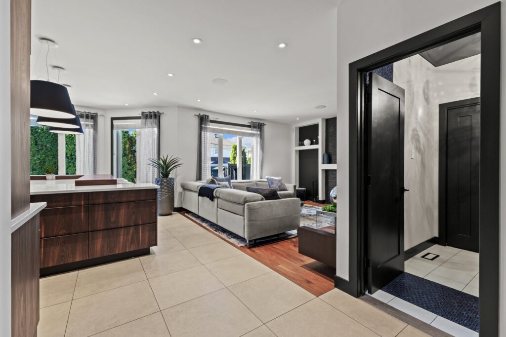 Dès votre entrée, vous serez séduit par les luxueux planchers en céramique chauffante qui s’étendent harmonieusement à travers le rez-de-chaussée, combinés à des planchers de bois franc chaleureux dans des zones clés, pour un équilibre parfait entre style et confort.