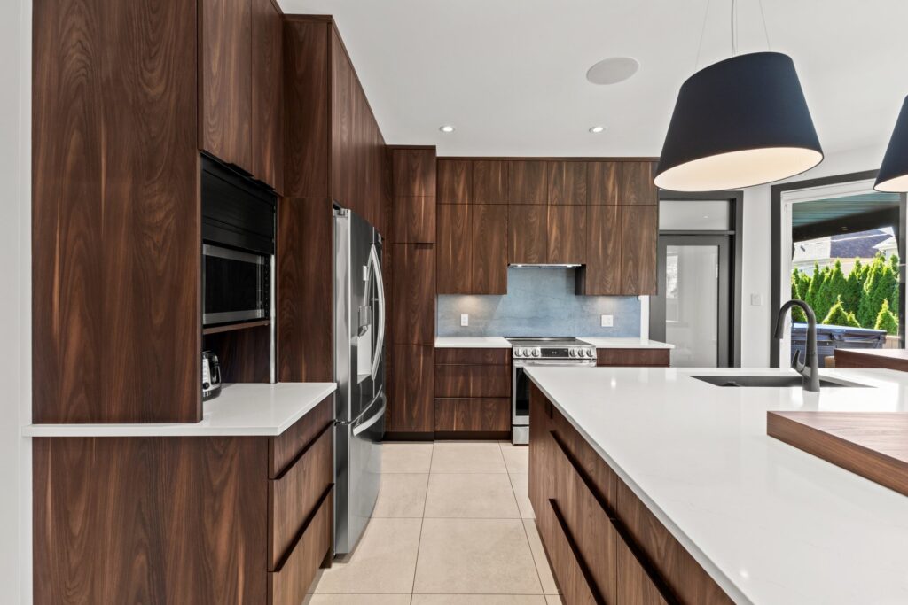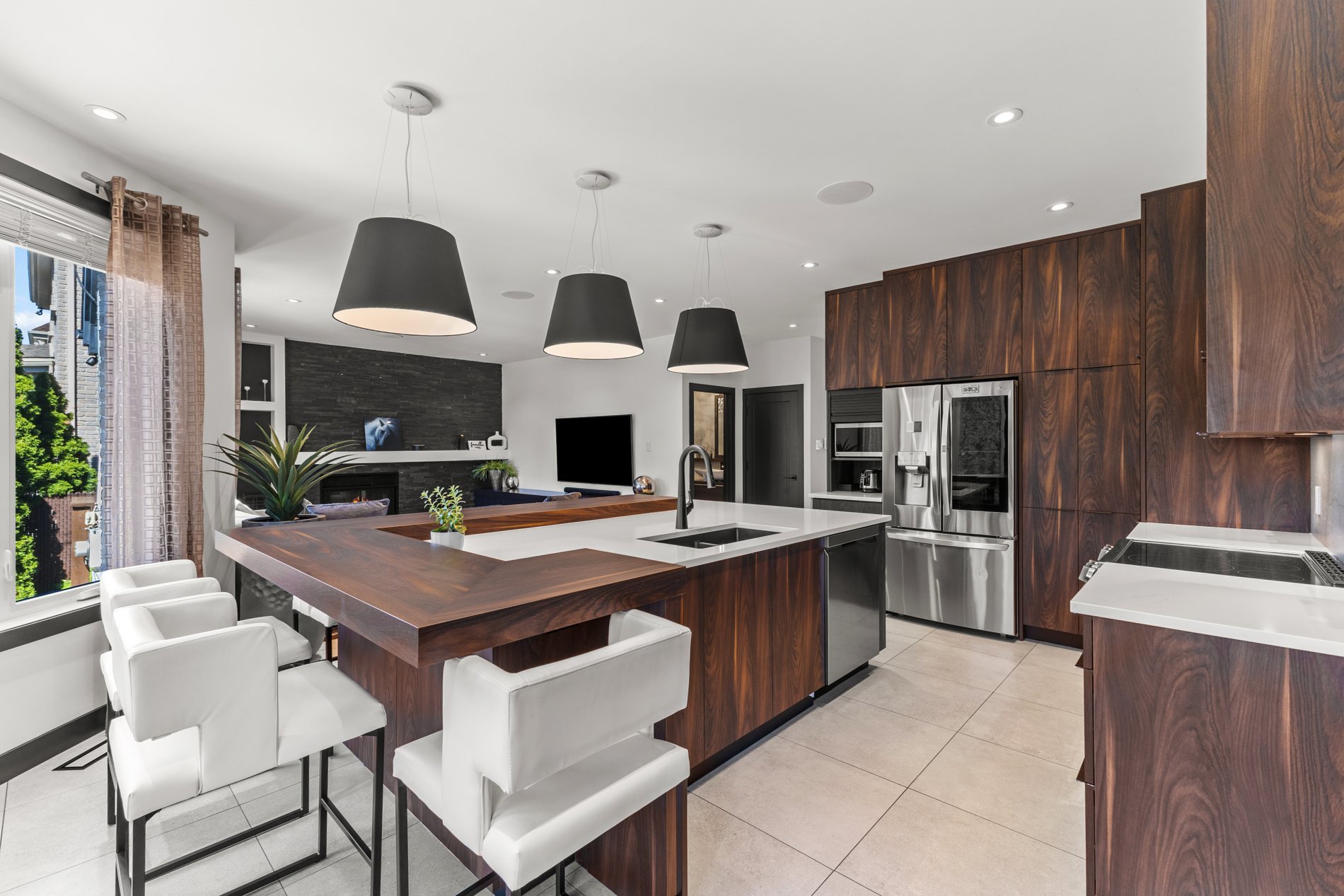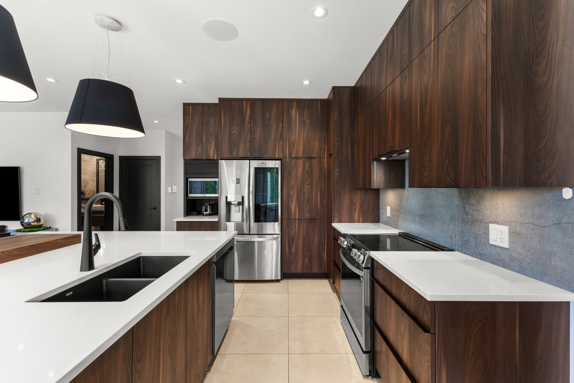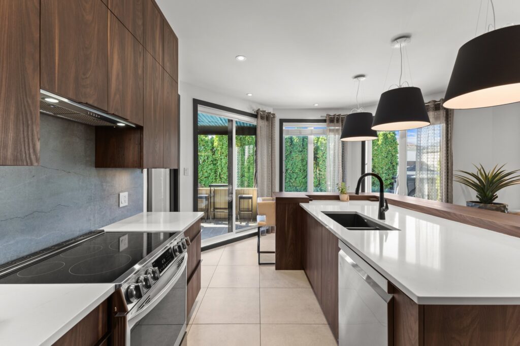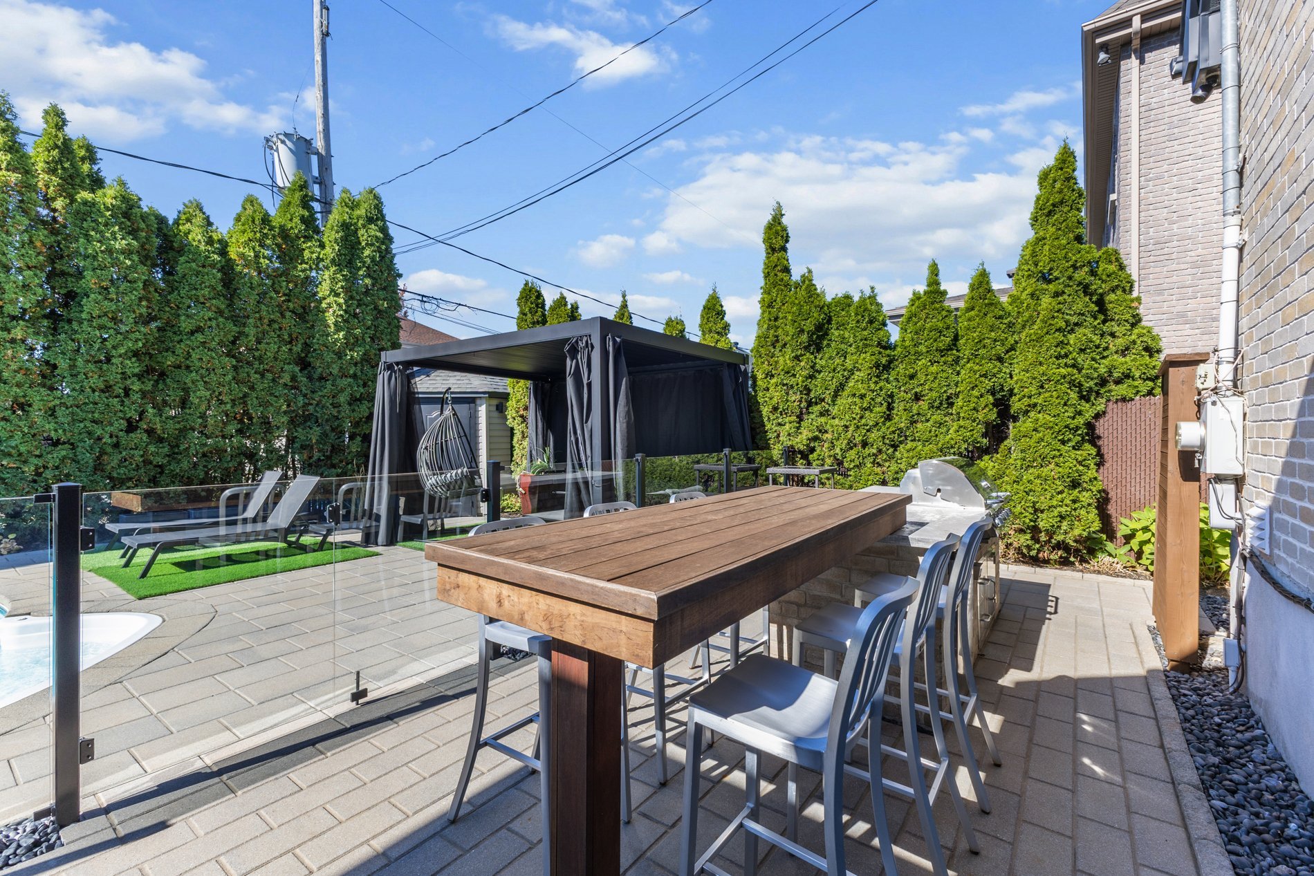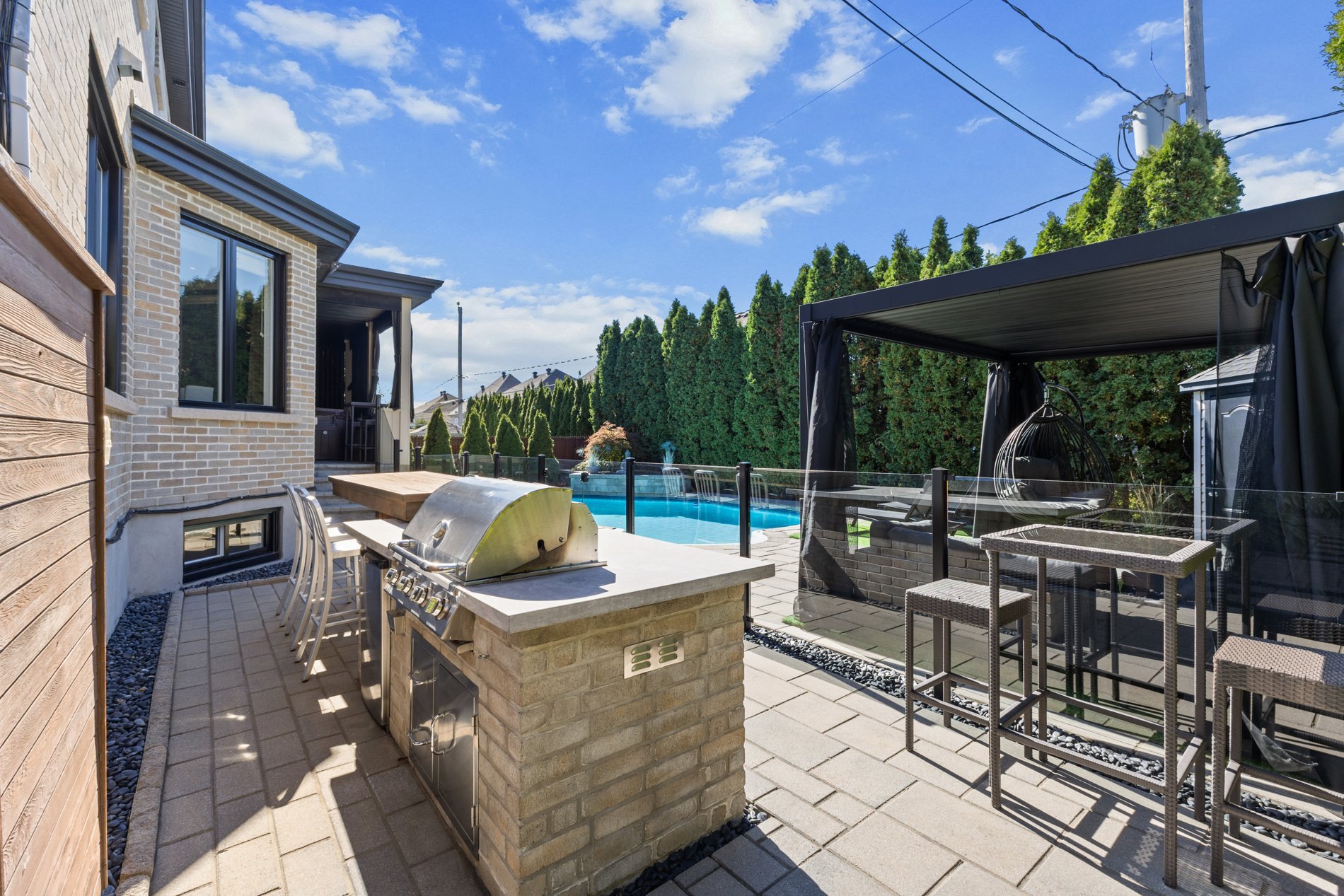 La cuisine gourmet est un véritable rêve de chef — armoires épurées, comptoirs en quartz, et une cuisine extérieure complète avec BBQ, rendant les repas à l’intérieur comme à l’extérieur simples et raffinés.