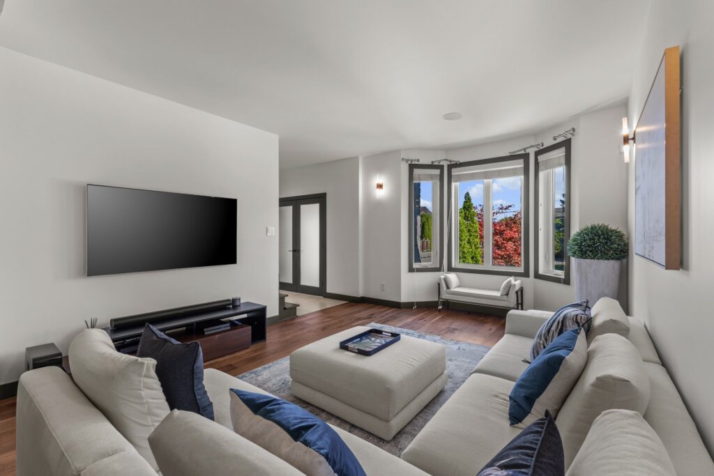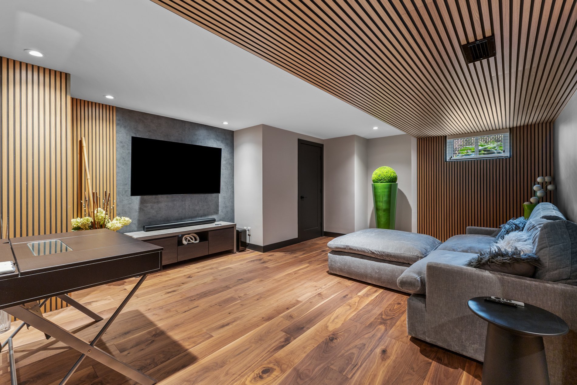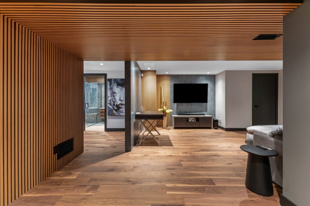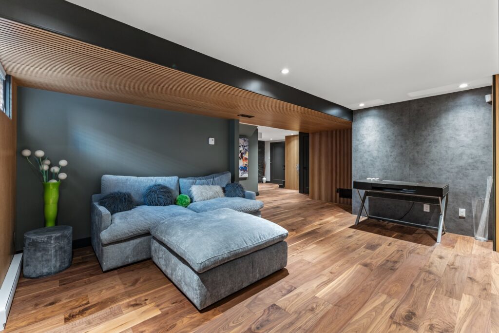 Une salle de cinéma entièrement équipée au sous-sol est prête à accueillir vos soirées films entre amis ou en famille — pour un vrai divertissement à domicile.