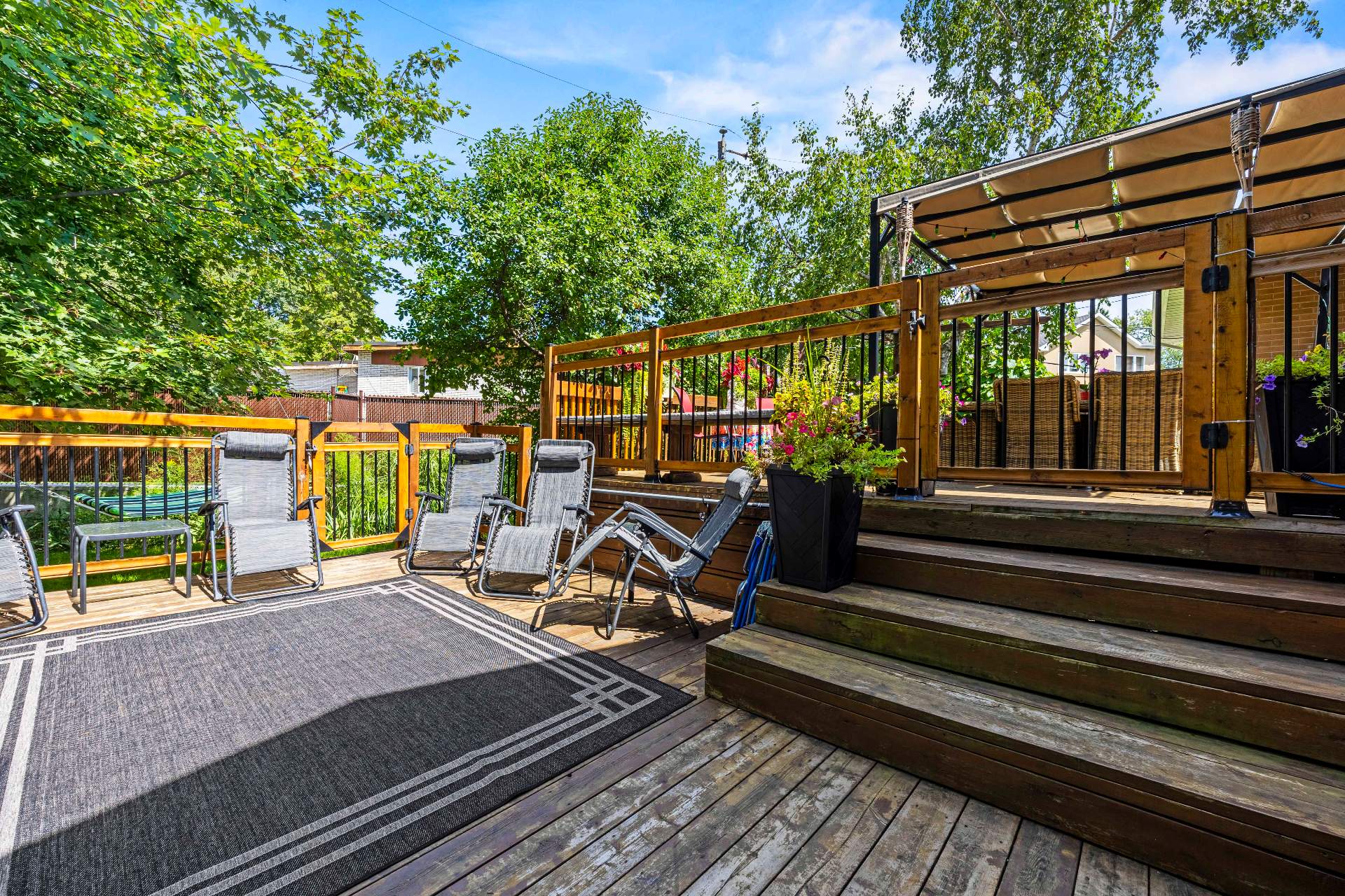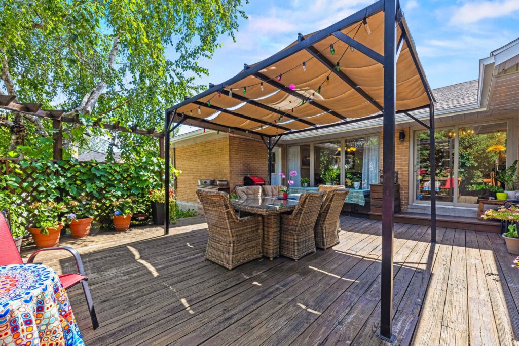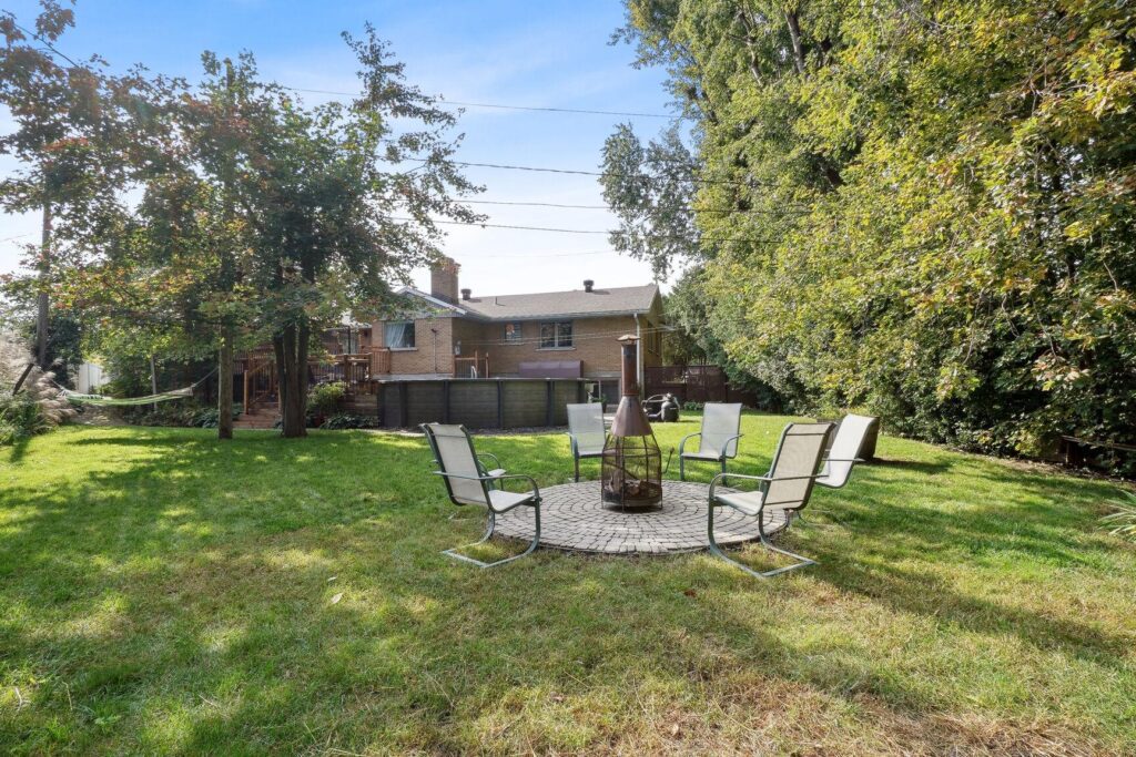 La **vaste cour arrière** offre amplement d’espace pour que les enfants puissent jouer, jardiner ou tout simplement profiter de votre oasis privée.