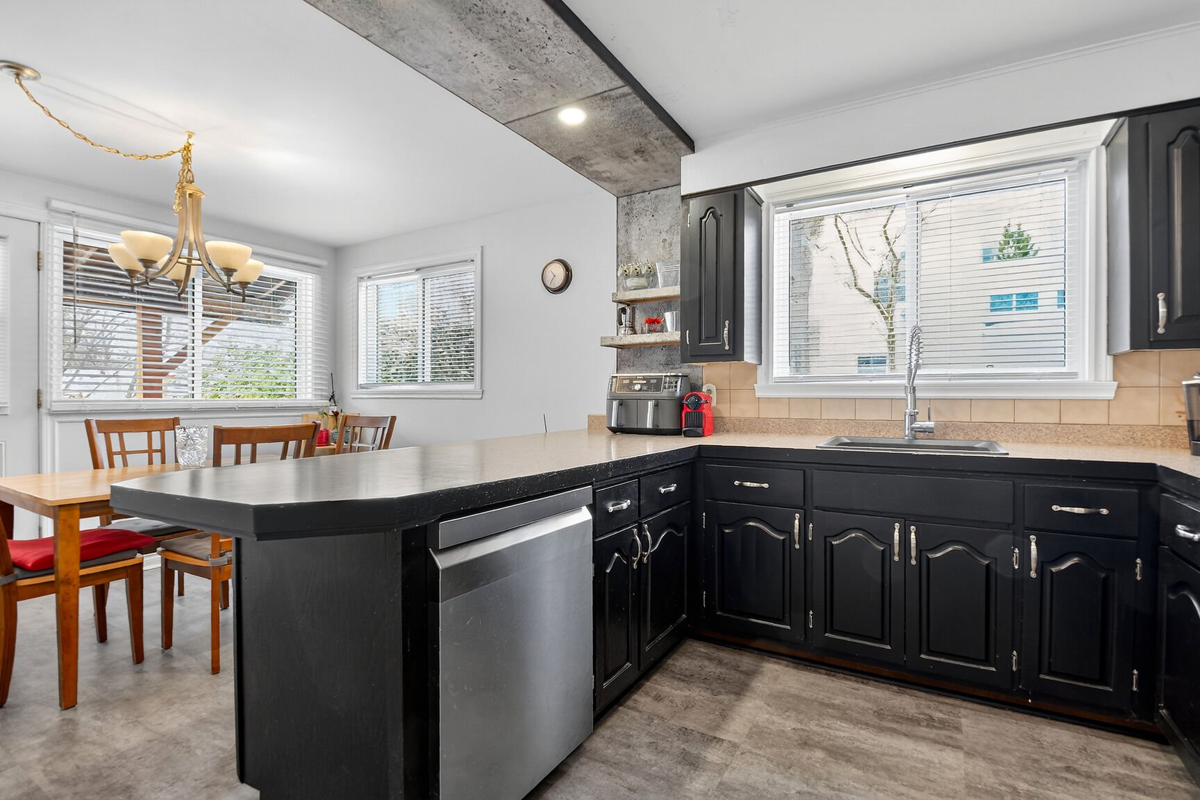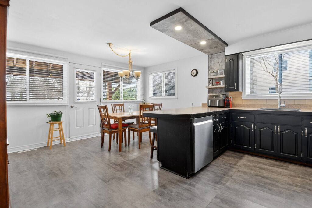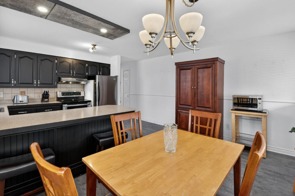 L aire de vie principale propose une cuisine et une salle à manger ouvertes, favorisant un espace convivial et lumineux.