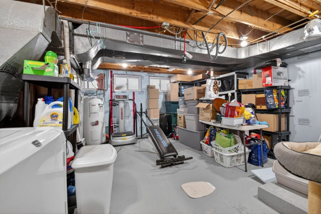 La propriété comprend également un garage double largeur avec une seule porte ainsi qu une mezzanine offrant un espace de rangement pratique.