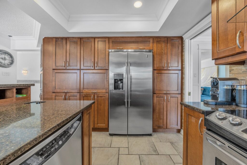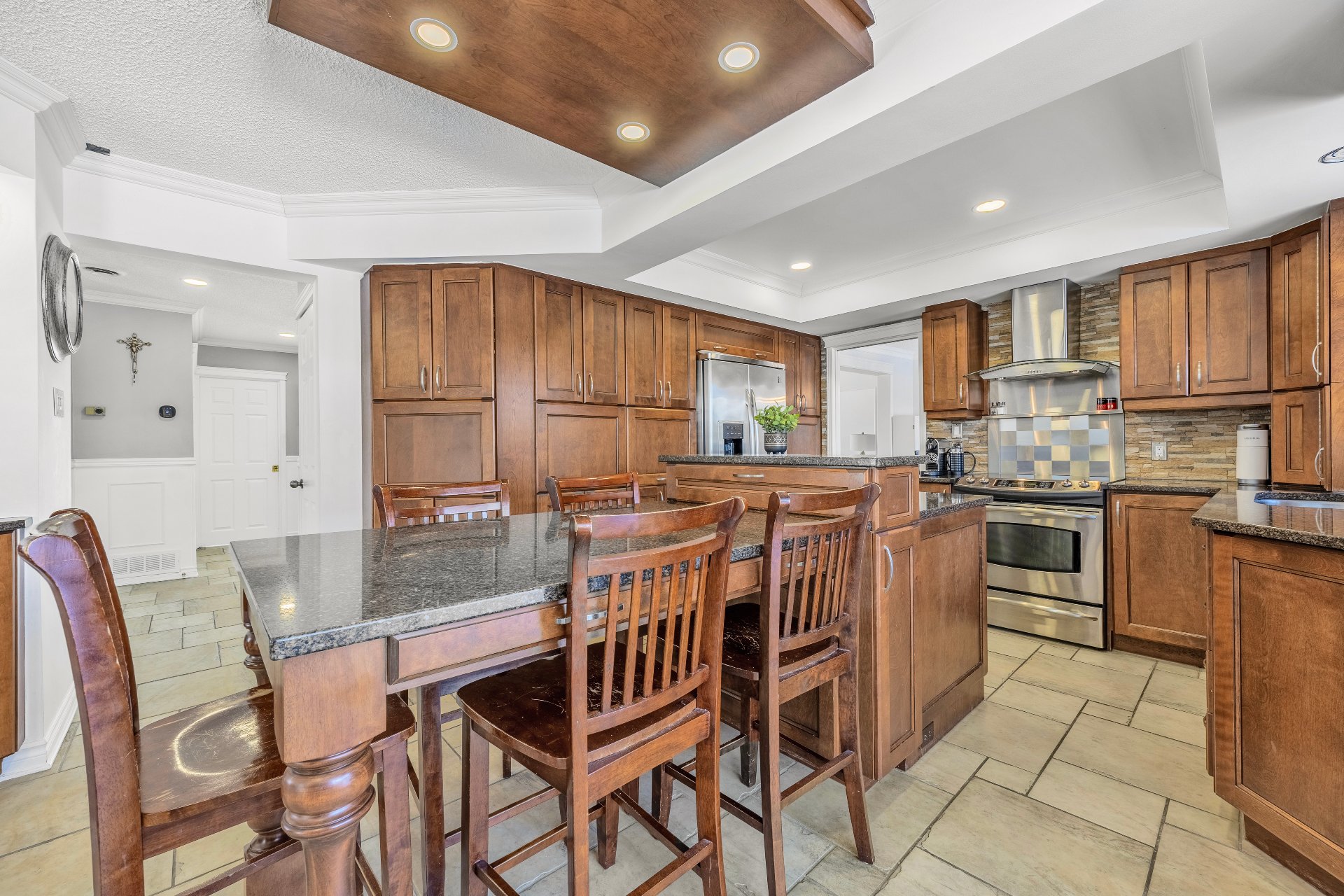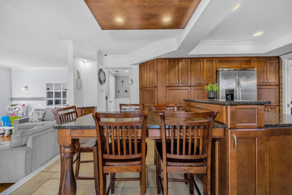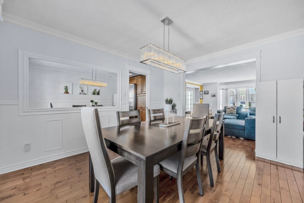 Le coin repas s’ouvre naturellement sur la salle à manger, tandis que la cuisine, à la fois raffinée et fonctionnelle, propose un vaste espace de rangement et des finitions de qualité supérieure.