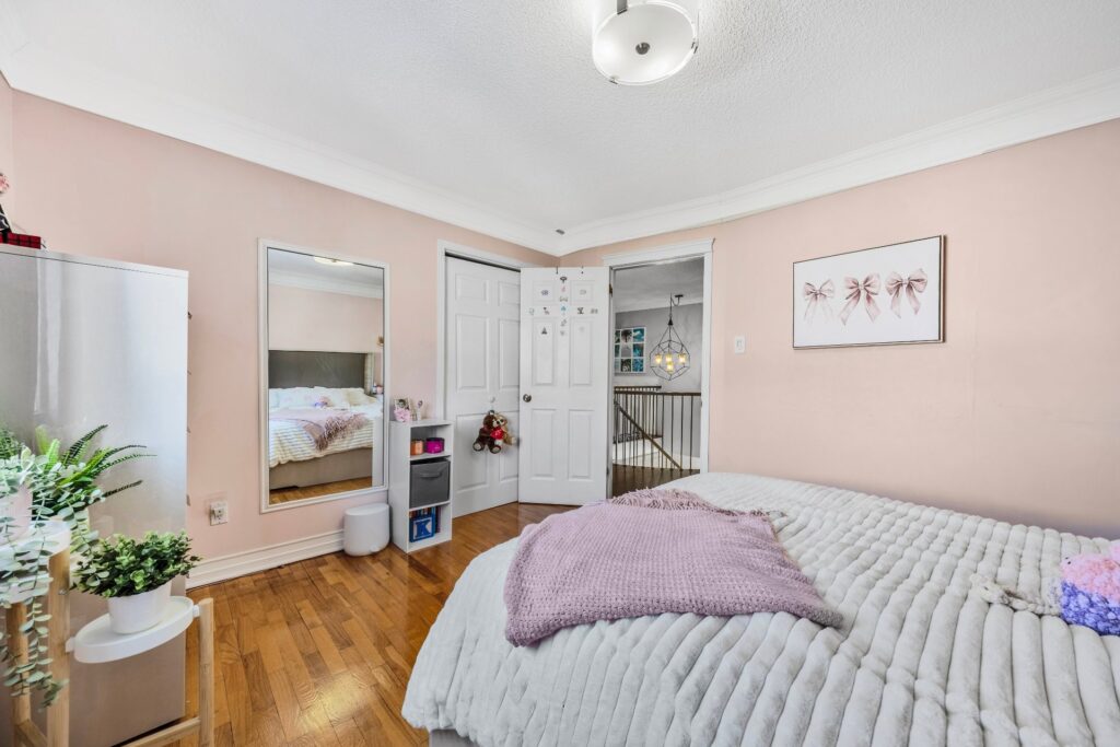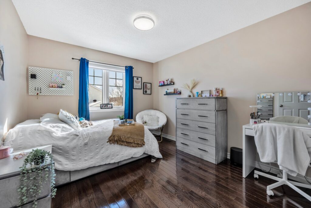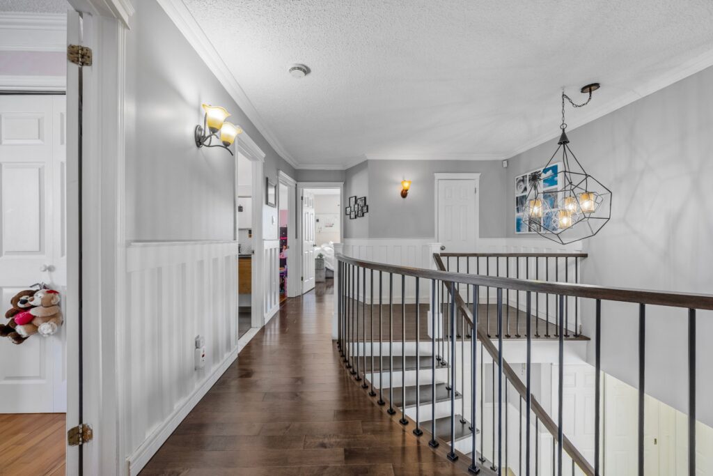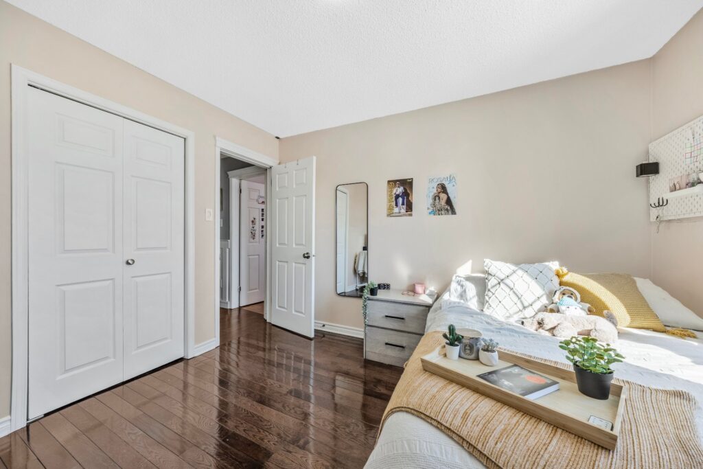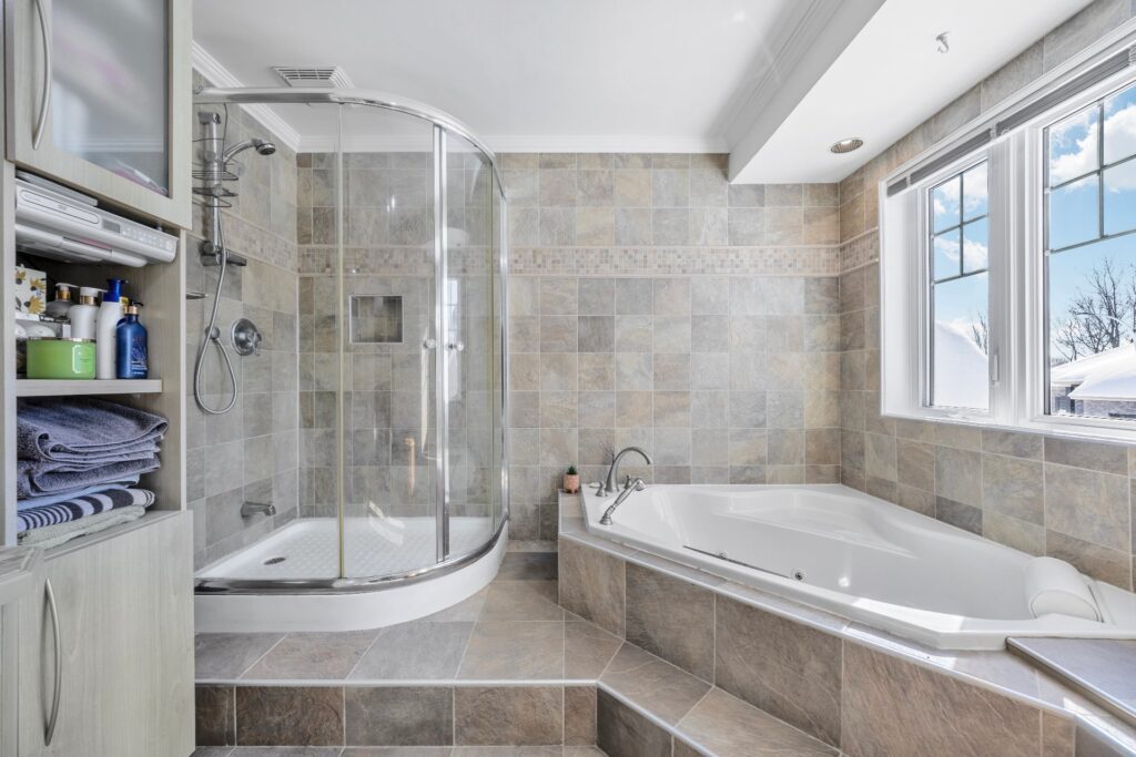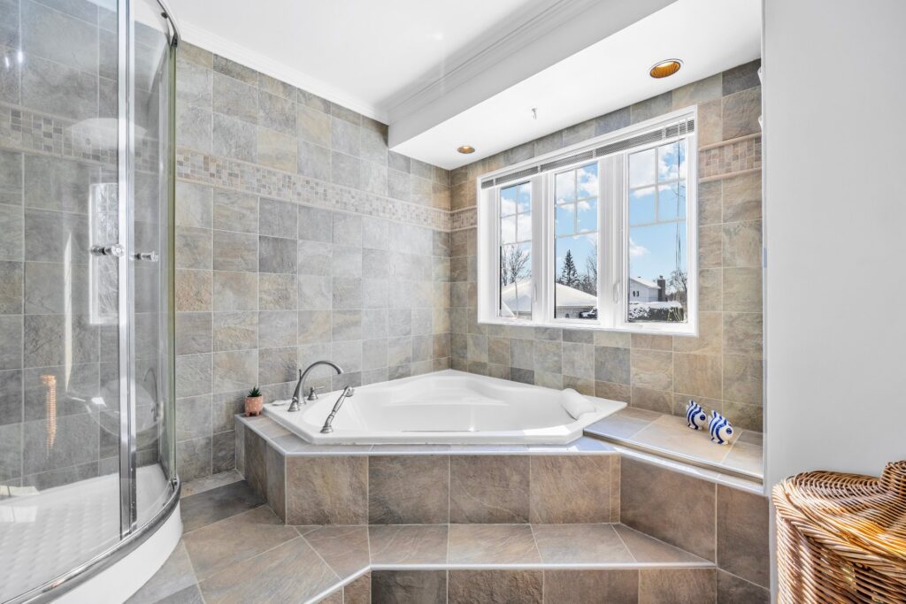 À l’étage, la suite principale se distingue par son immense walk-in et sa salle de bain privée munie d’une douche vitrée indépendante.