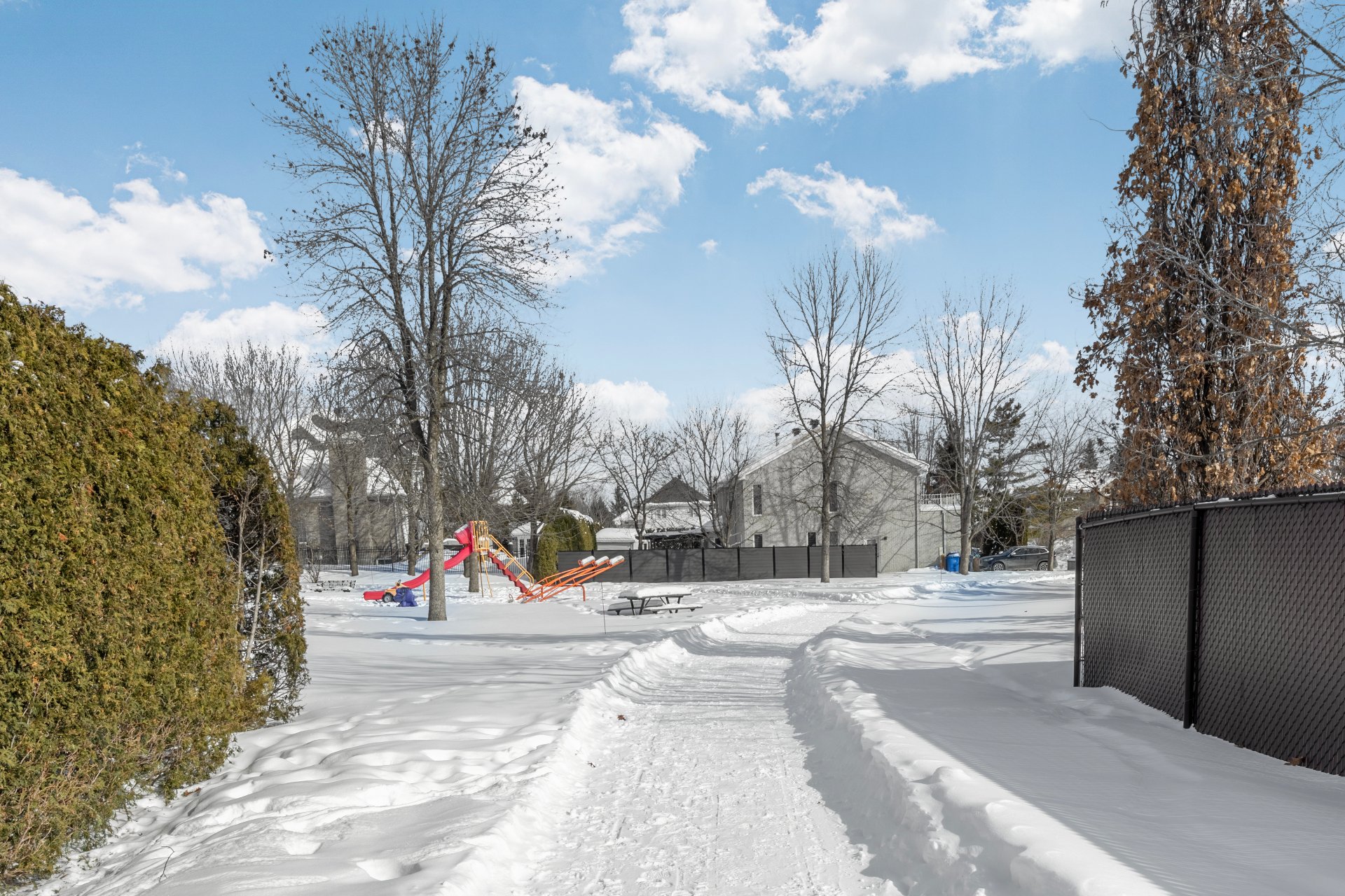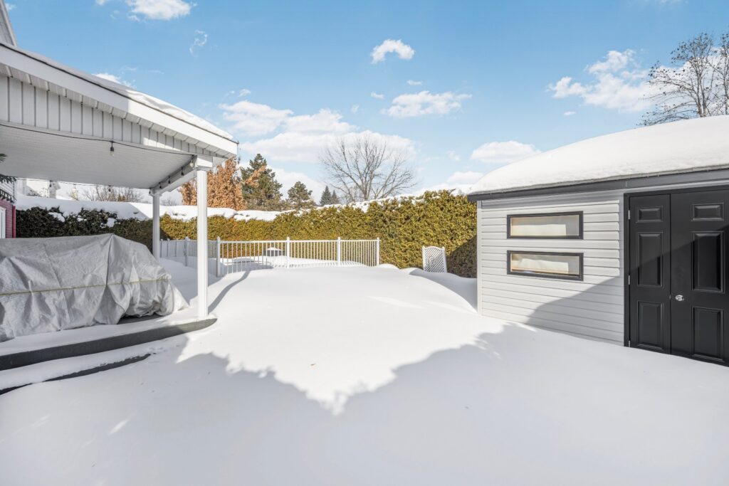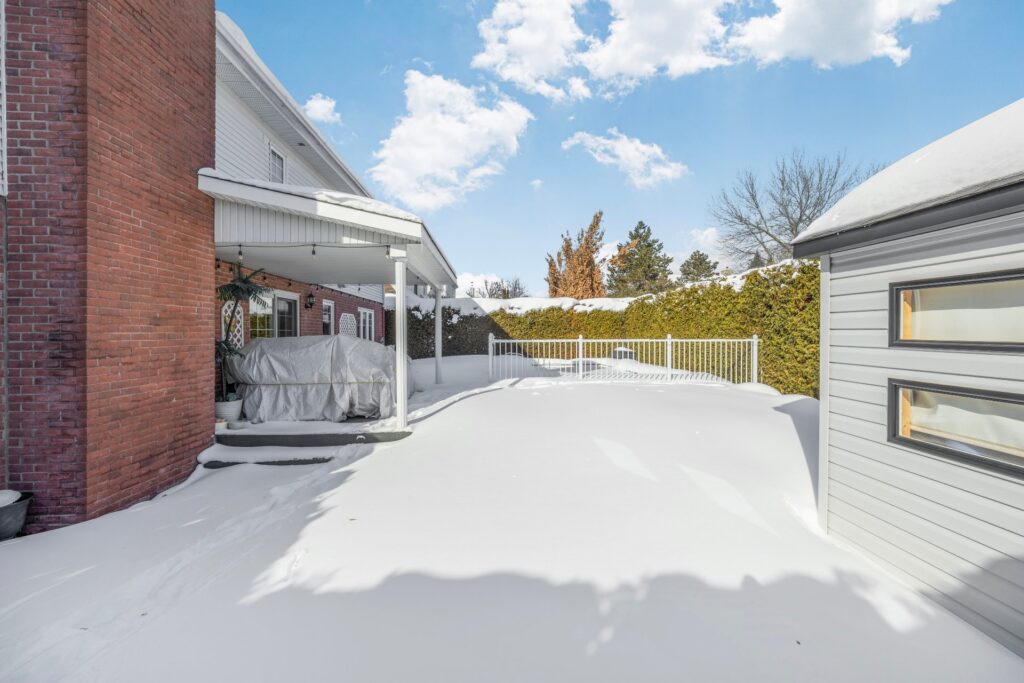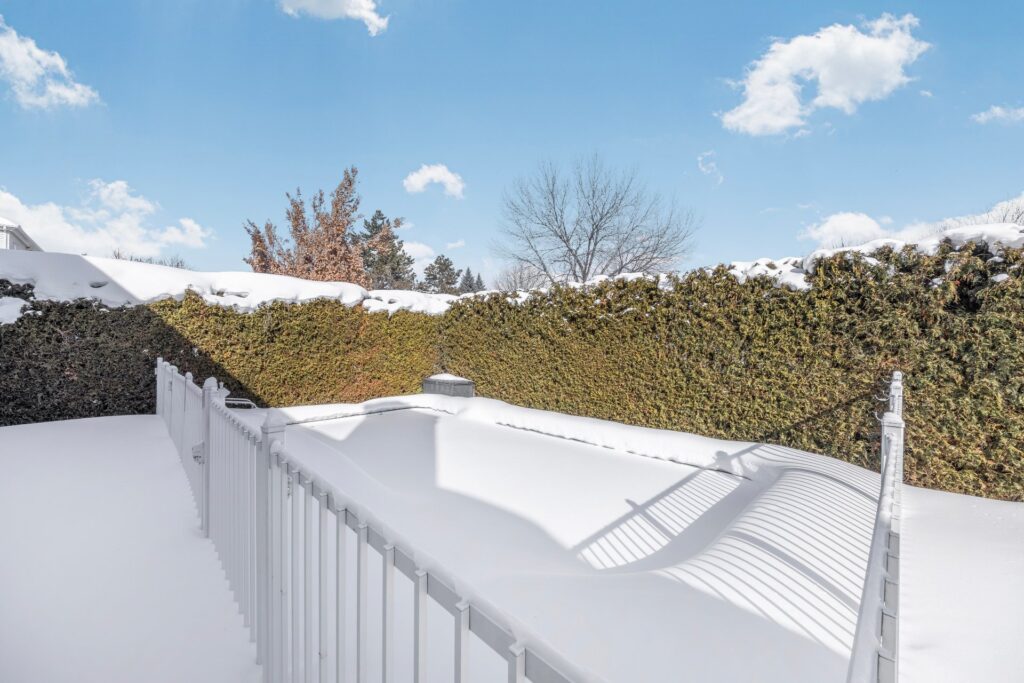 Intimité remarquable, cour aménagée avec piscine creusée et clôture amovible sécuritaire.