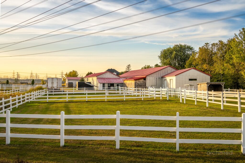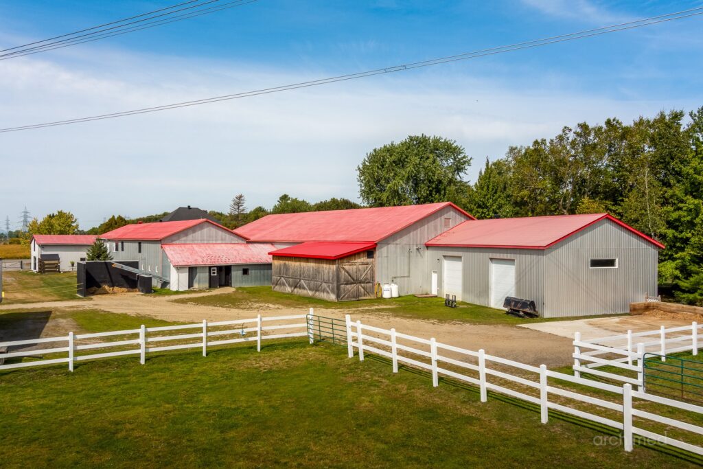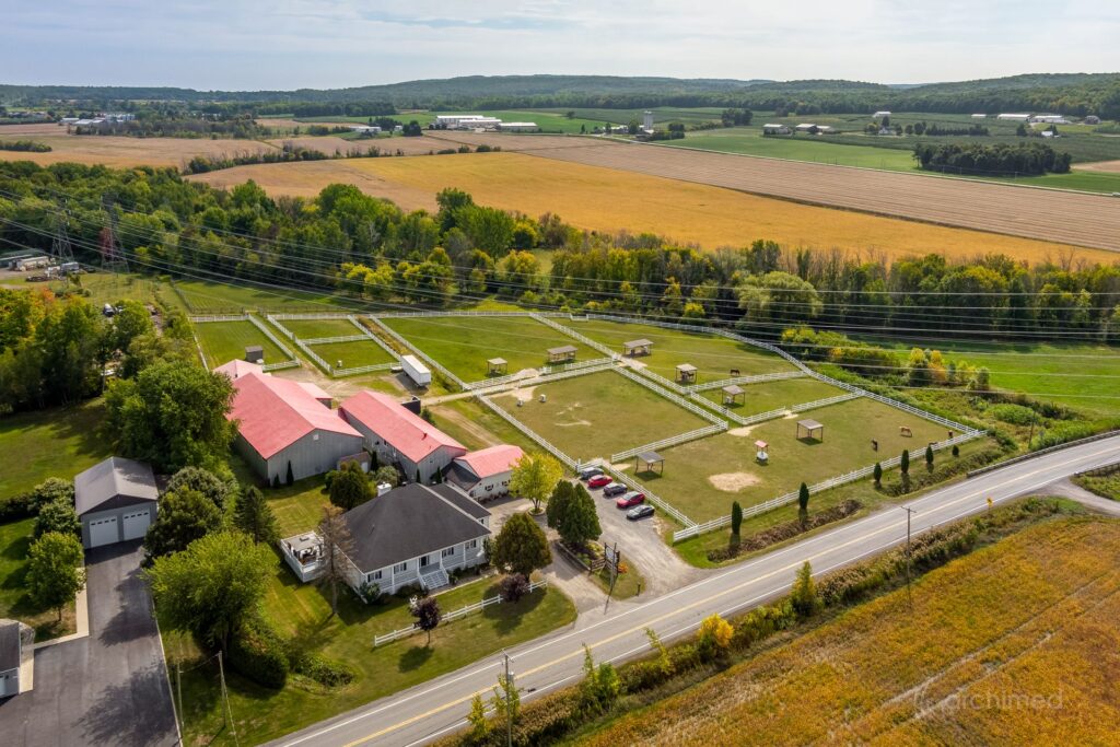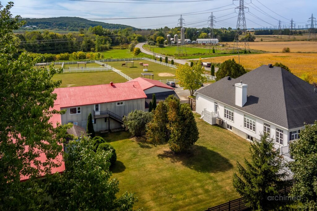Le impression d’espace et de lumière qui confère au quotidien atmosphère noble et apaisante à l’intérieur un loft intégré famille des invités ou du personnel, ce n’est pas un logement locatif mais un espace pensé pour l’autonomie et le confort Les installations équestres Ecuries 21 stalles spacieuses avec douche pour chevaux et finitions de haut niveau Manège intérieur chauffé et éclairé 7200 pi2 utilisables en toute saison Manège extérieur éclairé pour profiter des longues soirées d’été Nombreux paturages et enclos paddocks offrant liberté et sécurité aux chevaux Appartement du palefrenier 900 pi2 pour assurer une présence permanente et attentive Salle de conférence un espace atypique au service des projets et des rencontres Deux garages et plusieurs espaces d’entreposage pour le foin le bois la ripe et l’équipement d’entretien Un lieu marqué par son histoire Ce domaine a déjà accueilli un projet équestre destiné à des enfants différents rappelant le lien profond entre le cheval et l’humain lorsqu’il est respecté et accompagné avec soin Aujourd’hui il se prête à une utilisation personnelle et privée idéal pourun propriétaire qui souhaite vivre pleinement sa passion avec ses propres chevaux dans un cadre raffiné La particularité La plupart des propriétés équestres sont accompagnées de maisons de type fermette simples et pratiques.