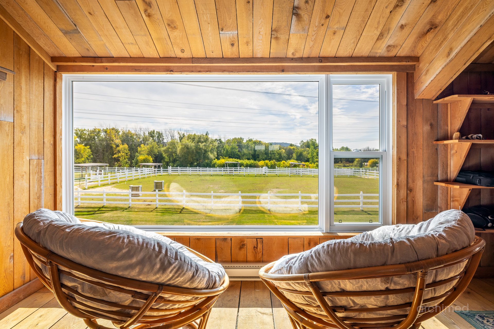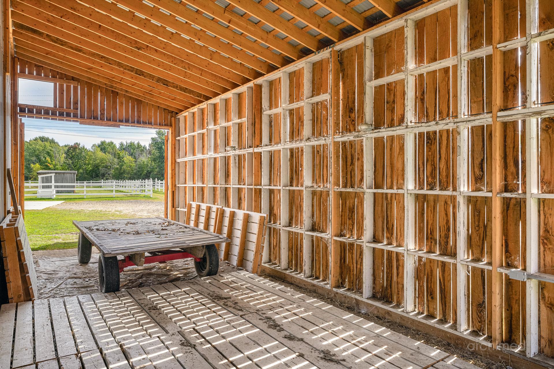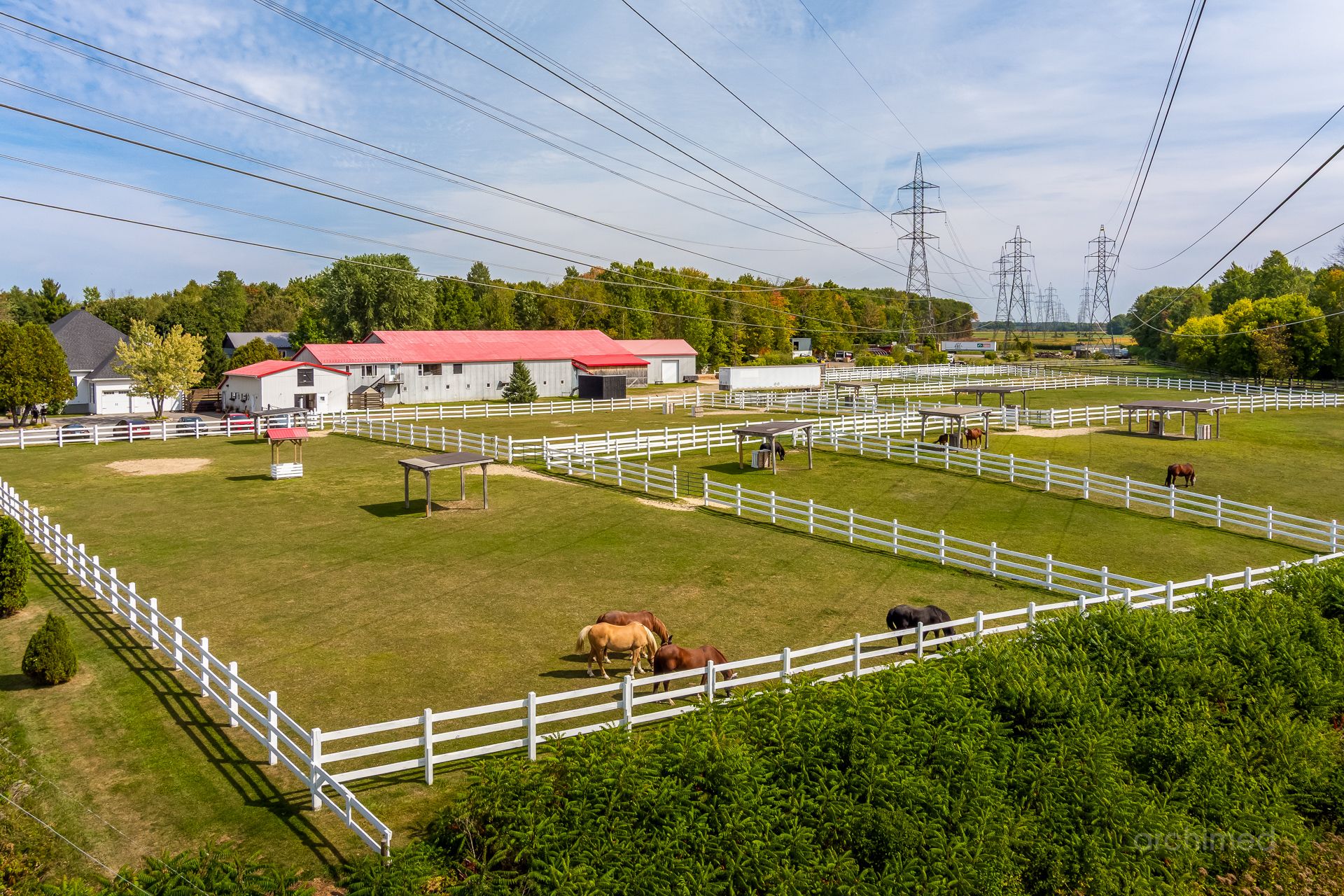 Le impression d’espace et de lumière qui confère au quotidien atmosphère noble et apaisante à l’intérieur un loft intégré famille des invités ou du personnel, ce n’est pas un logement locatif mais un espace pensé pour l’autonomie et le confort Les installations équestres Ecuries 21 stalles spacieuses avec douche pour chevaux et finitions de haut niveau Manège intérieur chauffé et éclairé 7200 pi2 utilisables en toute saison Manège extérieur éclairé pour profiter des longues soirées d’été Nombreux paturages et enclos paddocks offrant liberté et sécurité aux chevaux Appartement du palefrenier 900 pi2 pour assurer une présence permanente et attentive Salle de conférence un espace atypique au service des projets et des rencontres Deux garages et plusieurs espaces d’entreposage pour le foin le bois la ripe et l’équipement d’entretien Un lieu marqué par son histoire Ce domaine a déjà accueilli un projet équestre destiné à des enfants différents rappelant le lien profond entre le cheval et l’humain lorsqu’il est respecté et accompagné avec soin Aujourd’hui il se prête à une utilisation personnelle et privée idéal pourun propriétaire qui souhaite vivre pleinement sa passion avec ses propres chevaux dans un cadre raffiné La particularité La plupart des propriétés équestres sont accompagnées de maisons de type fermette simples et pratiques.