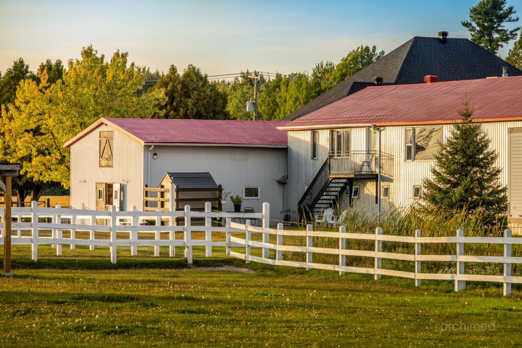 Le cadre Saint Benoit Mirabel Situé dans les Laurentides à environ 57 km de Montréal le domaine béneficie d’un environnement agricole calme et d’un accès rapide aux autoroutes 15, 50 et 13 facilitant les déplacements vers Montréal Laval l’Outaouais et les grands axes du Québec La région ouvre aussi directement sur les Laurentides réputé pour leurs stations de ski leurs lacs et leur culture de villégiature quatre saisons.