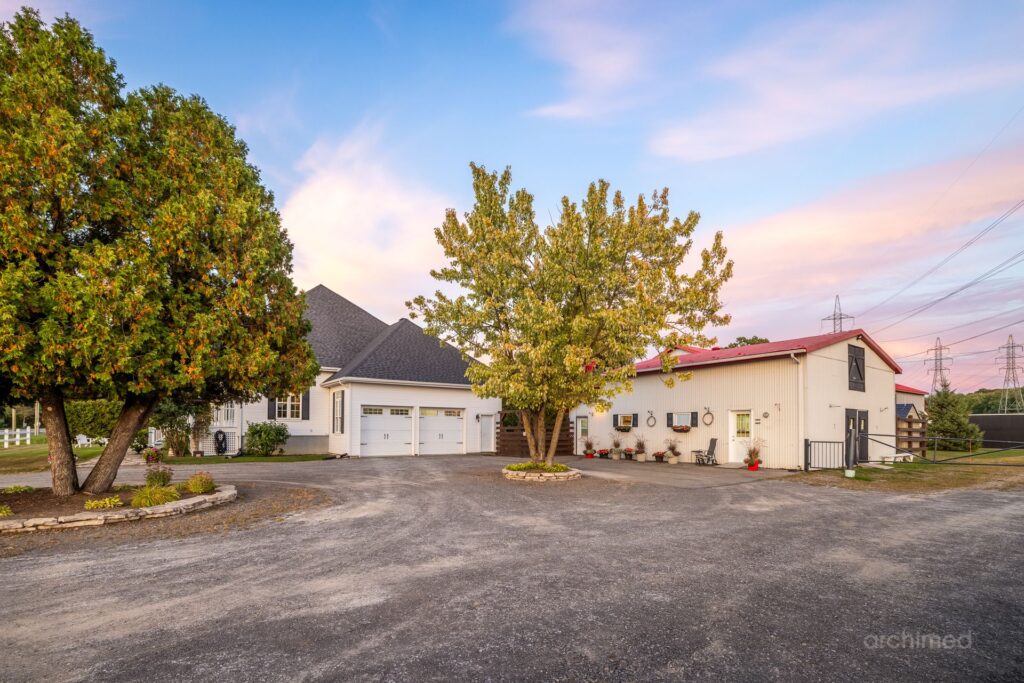 Domaine equestre a Saint Benoit Mirabel Ce domaine equestre situe a Saint Benoit Mirabel nest pas un centre de pension ni une ferme fonctionnelle Cest une propriete rare qui conjugue le confort dune maison de prestige et la qualite dinstallations equestres completes La maison principale Avec pres de 4500 pi2 habitables hors garage la residence adopte une architecture dinspiration neo classique Le sejour principal avec ses plafonds de 13 pieds offre une impression despace et de lumiere qui conferent au quotidien une atmosphere noble et apaisante A linterieur un loft integre type 4 et demi a ete concu pour accueillir des membres de la famille des invites ou du personnel Ce nest pas un logement locatif mais un espace pense pour lautonomie et le confort Les installations equestres Ecuries 21 stalles spacieuses avec douche pour chevaux et finitions de haut niveau Manege interieur chauffe et eclaire 7200 pi2 utilisables en toute saison Manege exterieur eclaire pour profiter des longues soirees dete Nombreux paturages et enclos paddocks offrant liberte et securite aux chevaux Appartement du palefrenier 900 pi2 pour assurer une presence permanente et attentive Salle de conference un espace atypique au service des projets et des rencontres Deux garages et plusieurs espaces dentreposage pour le foin le bois la ripe et lequipement dentretien Un lieu marque par son histoire Ce domaine a deja accueilli un projet equestre destine a des enfants differents rappelant le lien profond entre le cheval et lhumain lorsquil est respecte et accompagne avec soin Aujourdhui il se prete a une utilisation personnelle et privee ideal pour un proprietaire qui souhaite vivre pleinement sa passion avec ses propres chevaux dans un cadre raffine La particularite La plupart des proprietes equestres sont accompagnees de maisons de type fermette simples et pratiques Ici la maison est elle meme un element de luxe rarement associe a ce type de domaine Cest cette combinaison demeure dexception et installations equestres de haut niveau qui fait de ce lieu une opportunite unique Le cadre Saint Benoit Mirabel Situe dans les Laurentides a environ 57 km de Montreal le domaine beneficie dun environnement agricole calme et dun acces rapide aux autoroutes 15 50 et 13 facilitant les deplacements vers Montreal Laval lOutaouais et les grands axes du Quebec La region ouvre aussi directement sur les Laurentides repute pour leurs stations de ski leurs lacs et leur culture de villegiature quatre saisons Le Parc national dOka labbaye et ses sentiers ainsi quun vaste reseau dactivites de plein air renforcent lattrait dun lieu qui conjugue nature sport et serenite Saint Benoit conserve en outre une identite locale forte heritee de son histoire agricole et de son passe lie aux PatriotesDomaine équestre à Saint-Benoit Mirabel Ce domaine équestre situé à Saint-Benoit Mirabel n’est pas un centre de pension ni une ferme fonctionnelle c’est une propriété rare qui conjugue le confort d’une maison de prestige et la qualité d’installations équestres complètes.
